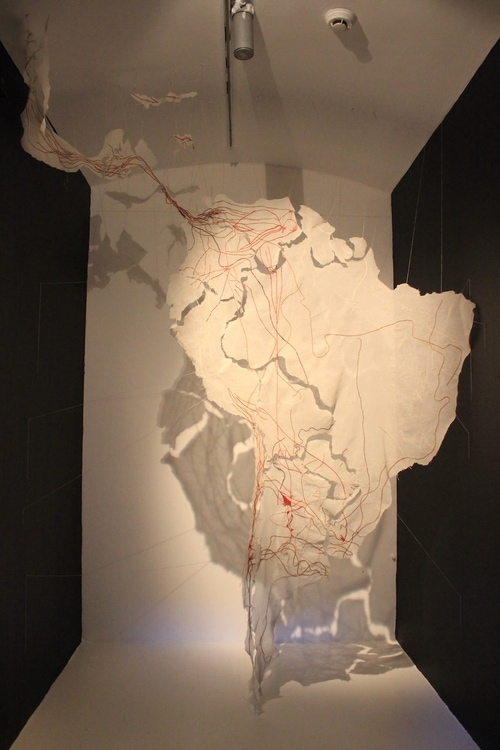 She is interested in narrating geographies and territories and in elucidating the interrelationships among landscape transformations, migratory fluxes and the updated colonial order. She wonders about the construction of the collective memory when affected by colonial trauma and about the use of art as a possible tool for building technologies of emotional survival, narration, cartography and affection. In her artistic practice she develops listening and meeting devices that orbit between textiles, electronics, installation and performance.
