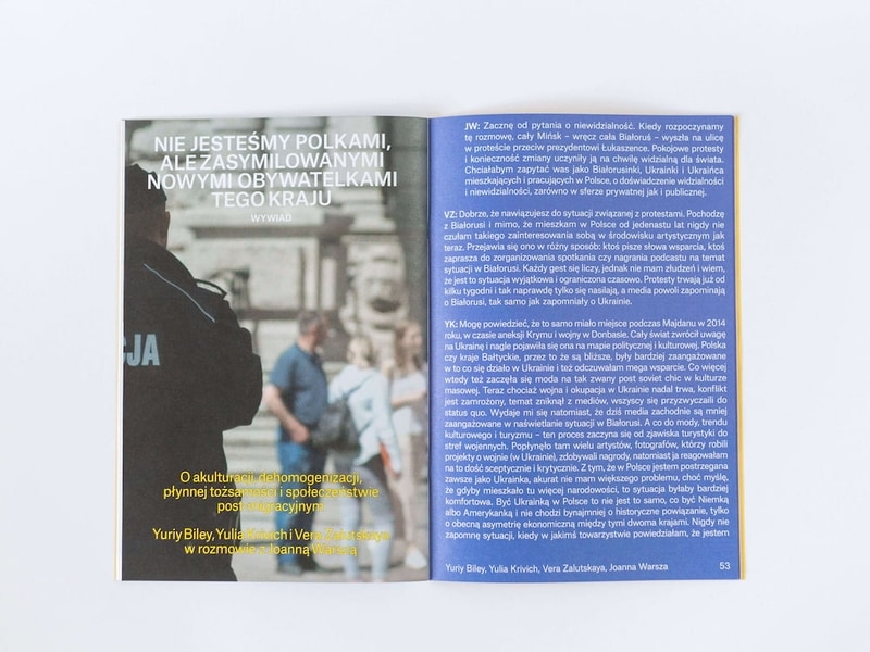 Yulia Krivich (Ukraine/Poland) is a visual artist, participant of Za*Grupa (*foreign artists living in Poland), working with photography, public space. She graduated from the Department of Architecture of the State Academy of Civil Engineering and Architecture (2010) in Dnipro and from the Faculty of Media Arts of the Academy of Fine Arts in Warsaw (2013).